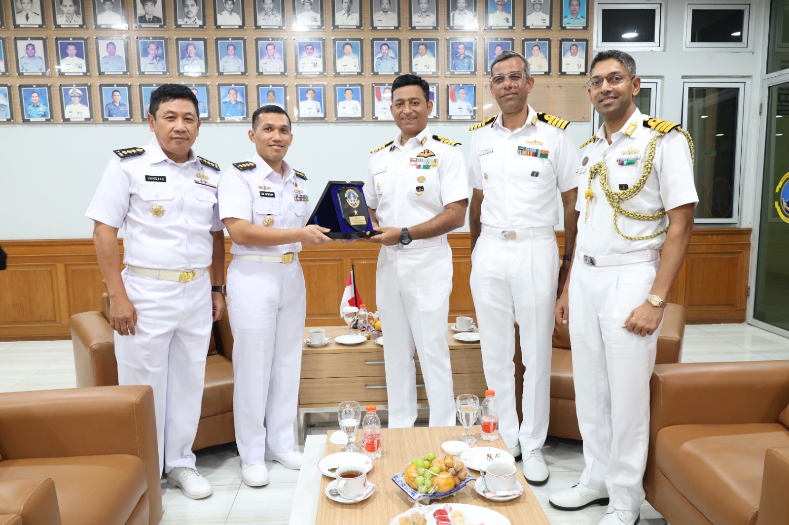 MetropolitanPost.id – Komandan Pangkalan Utama Angkatan Laut (Danlantamal) III Jakarta Brigjen TNI (Mar) Harry Indarto, S.E., M.M. diwakili Asisten Logistik (Aslog) Danlantamal III Jakarta Kolonel Laut (T) Yusa Adi Hartanto, S.T., M.Tr.Hanla., M.M., M.Tr.(Han). didampingi Kepala Fasilitas Pemeliharaan dan Perbaikan (Kafasharkan) Jakarta Kolonel Laut (T) Hamsjah Bastari, S.E., M.M. menerima courtesy call (CC) atau kunjungan kehormatan Komandan Kapal Perang Angkatan Laut India (Indian Navy Ship/INS) INS Kolkata (D63) Captain Sharad Sinsunwal dan Komandan INS Sahyadri (F49) Captain Rajan Kapoor bertempat di ruang utama Mako Lantamal III Jakarta Jl. Gunung Sahari No. 2 Ancol, Jakarta Utara, Senin (17/07/2023).