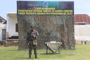 MetropolitanPost.id – Komandan Brigade Infanteri (Danbrigif) Mekanis Raider 6 Kostrad Letkol Inf Andrian Siregar, S.I.P., M.Han. secara resmi menutup Latihan Taktis Tingkat Kompi Tempur Yonif Mekanis Raider 411/Pandawa tahun 2022, dalam rangka persiapan melaksanakan tugas operasi Satgas Satuan Organik di Provinsi Papua tahun 2023 yang dilaksanakan di Lapangan Olahraga Ds. Girimulyo Kec. Ngargoyoso Kab. Karanganyar, Jawa Tengah. Selasa (27/9/2022).