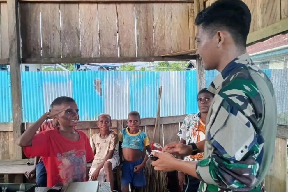 Pasi Teritorial Letda Inf Yudi Riandoko juga memberikan perhatian kepada anak – anak “Ade – Ade penerus bangsa ini, sekolah yang benar biar nanti cita – cita kalian tercapai, bahagiakan orang tuamu dan bawah Papua lebih maju dari yang saat ini”. (Penkostrad).