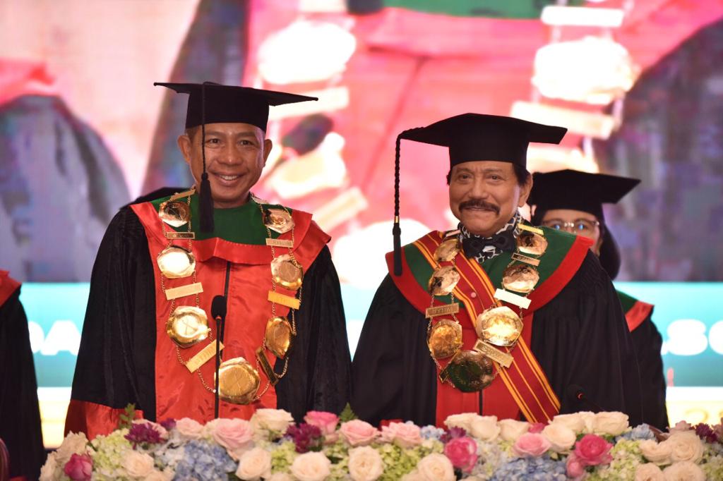 Acara Wisuda Program Studi Sarjana dan Pasca Sarjana STHM berlangsung dengan khidmat dipimpin oleh Ketua Senat Dewan Guru Besar STHM Jenderal TNI Purn Prof.Dr. A.M. Hendropriyono, S.T.,S.H.,M.H., dihadiri Anggota Senat Dewan Guru Besar STHM, Dirkumad, Ketua STHM, Para Civitas Akademika, Alumni dan Keluarga Wisudawan (Dispenad)