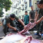 Setelah melaksanakan sholat Idul Adha, sebanyak 3 ekor sapi dan 8 ekor kambing diserahkan kepada panitia penyembelihan hewan kurban oleh Panglima Divisi Infanteri 3 Kostrad, Mayjen TNI Choirul Anam, S.E., M.M. secara simbolis di Masjid Al Fatih Divif 3 Kostrad dan akan disalurkan kepada masyarakat yang berhak menerimanya di sekitaran wilayah Divisi Infanteri 3 Kostrad. (Penkostrad).