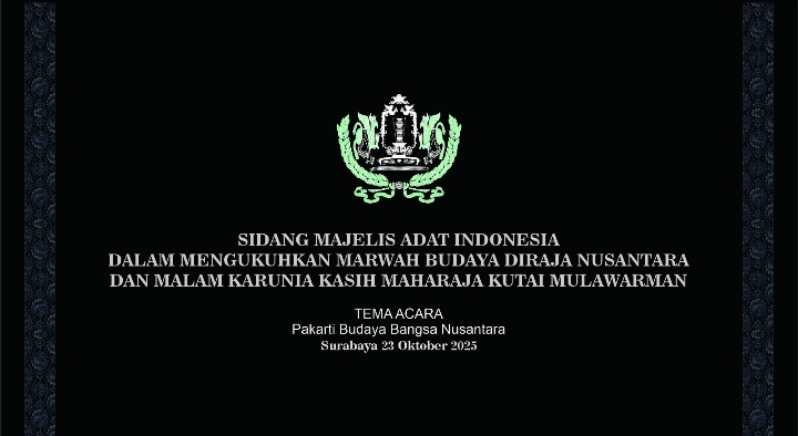 METROPOLITAN POST— Majelis Adat Indonesia (MAI) akan menggelar Sidang Majelis Adat Indonesia dalam Mengukuhkan Marwah Budaya Diraja Nusantara yang dirangkaikan dengan Malam Karunia Kasih Maharaja Kutai Mulawarman, di Kota Surabaya pada Kamis, 23 Oktober 2025.