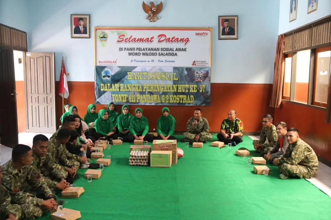 Kegiatan bhakti sosial yang di ikuti oleh Prajurit Yonif 411/Pandawa/6/2 Kostrad dan Pengurus Persit Kartika Chandra Kirana Ranting 2 Yonif 411, dilaksanakan di 3 tempat berbeda yakni Panti Pelayanan Sosial Anak (PPSA) Woro Wiloso Salatiga, Panti Asuhan Putri Aisyiyah dan Komunitas Disabilitas Salatiga.