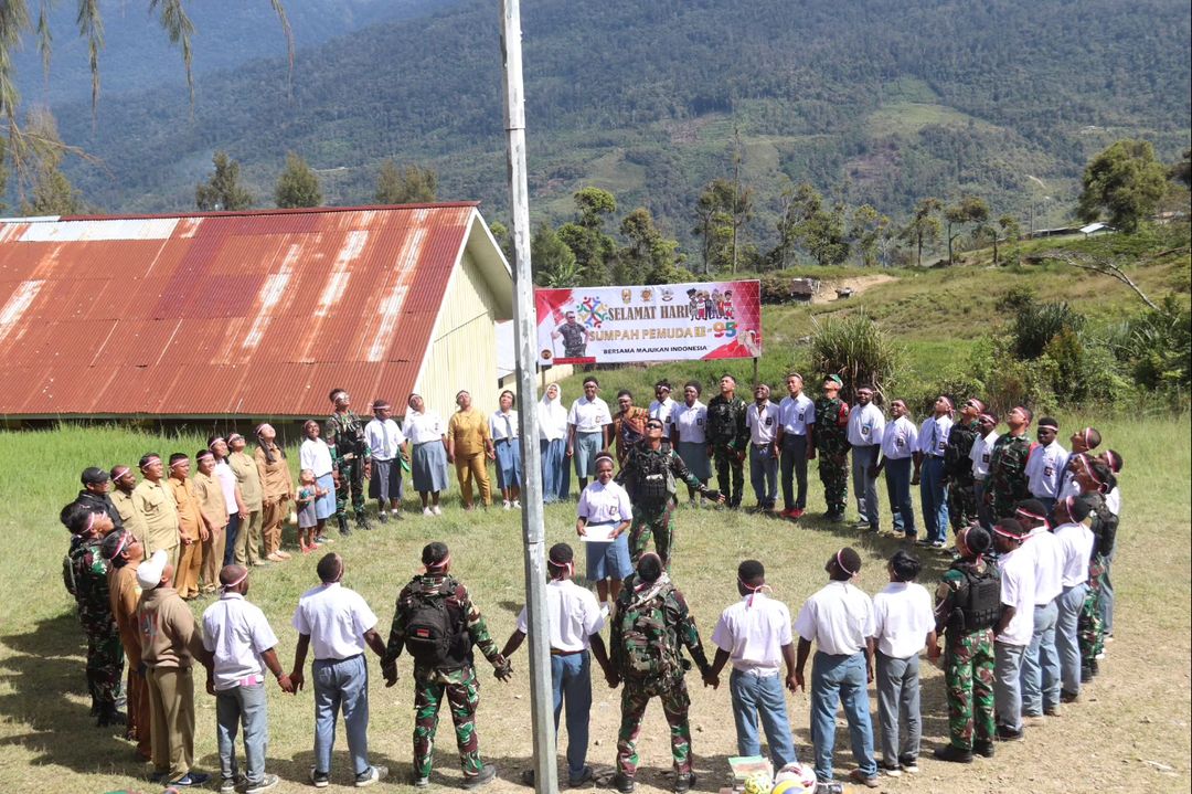MetropolitanPost.id – Pagi itu, pada Senin (30/10/23), tatkala Mentari pagi mulai menyeruak di birunya langit Intan Jaya. Suasana berbeda terlihat di lapangan upacara SMA Negeri 1 Sugapa, Kab. Intan Jaya, Prov Papua Tengah. Para Guru dan pelajar berbaur bersama prajurit Satgas 330 Kostrad sedang mengikuti kegiatan upacara peringatan Hari Sumpah Pemuda ke-95 dengan penuh khidmat.