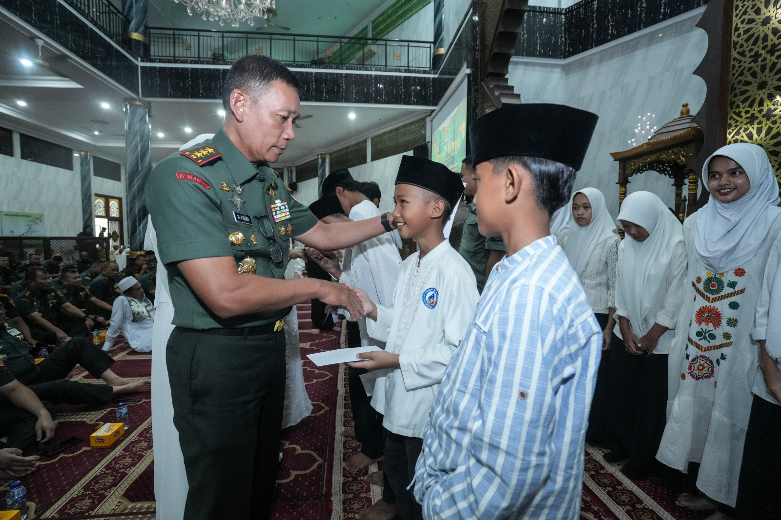 Usai membacakan sambutan, Pangkostrad berkesempatan menyantuni anak yatim piatu Yayasan Peduli Bangsa Banten (YPBB), Cileduk, Jaksel, sebagai bentuk wujud nyata kepedulian terhadap sesama.