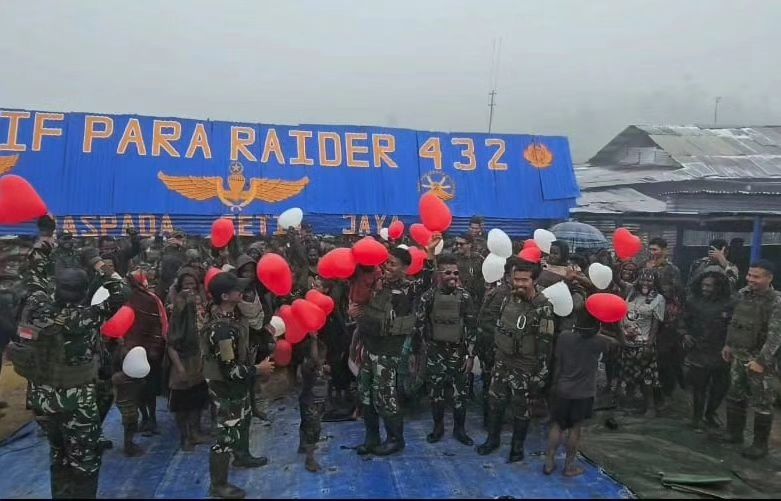 Acara perayaan ini ditutup dengan penuh suka cita dan semangat persatuan. Masyarakat Yigi dan prajurit (Penkostrad).