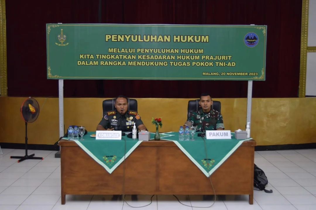 MetropolitanPost.id – Dihadiri langsung oleh Komandan Batalyon Arhanud 2 Kostrad Letkol Arh Luthfi Novriadi, S.E., S.Sos., M.Han., M.Sc. serta seluruh prajurit dan Persit Yonarhanud 2/ABW/2 Kostrad menerima Penyuluhan Hukum dari Mayor Chk Andianto, S.H Perwira Hukum (Pakum) Divif 2 Kostrad yang bertempat di Aula Alap-alap. Malang, Senin (20/11/2023).