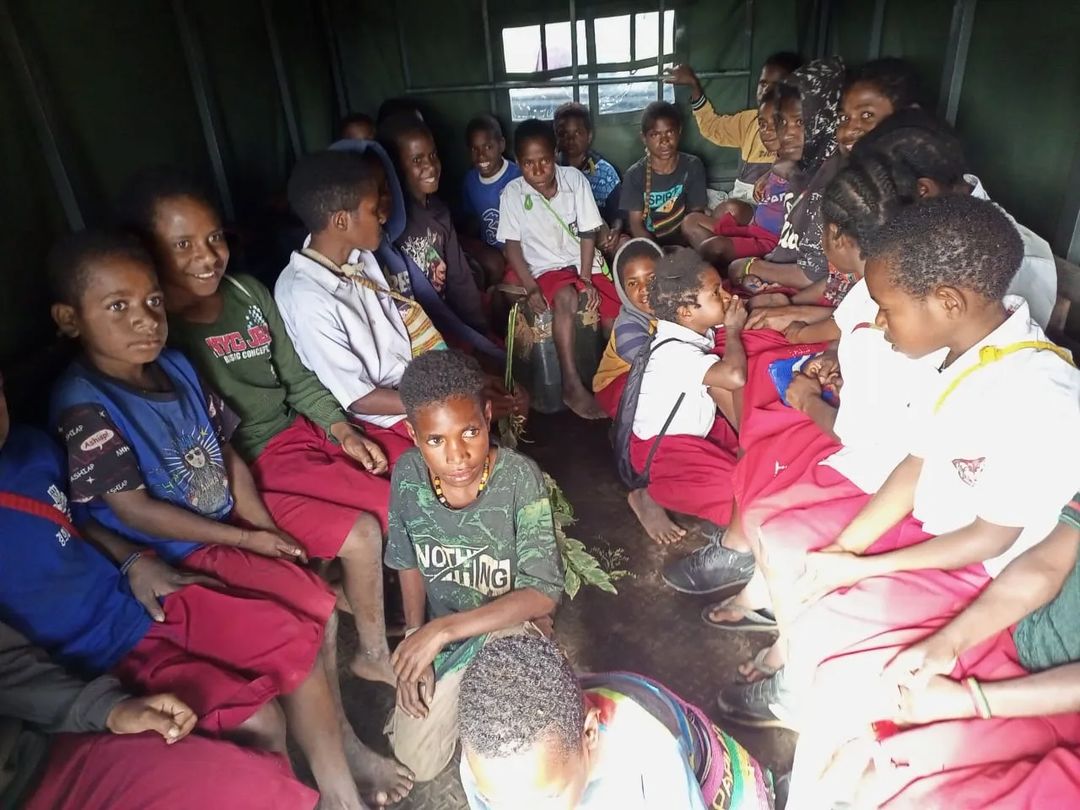 Ibu Manasi Yelipele (41) salah satu orang tua siswa merasa senang dan mengucapkan terima kasih kepada anggota pos Napua Satgas Yonif Raider 321 Kostrad selalu hadir membantu anak-anak kami pergi dan pulang sekolah menggunakan kendaraan. (Penkostrad).