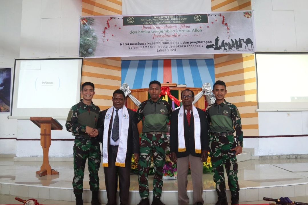 MetropolitanPost.id – Vokal grup Satgas Yonif 330 Kostrad turut mengiringi kegiatan ibadah perayaan Natal di GKII Antiokhia Yokatapa, Distrik Sugapa, Kabupaten Intan Jaya, Papua Tengah, Minggu (03/12/2023).