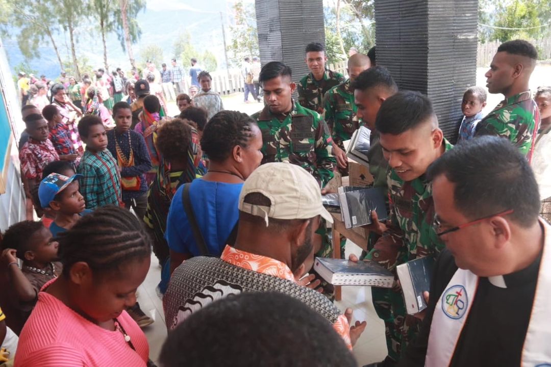 Minggu Berkah, Satgas Yonif 330 Kostrad Bagikan Alkitab Untuk Warga Intan Jaya