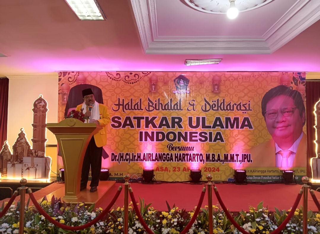 Jakarta, 23 April 2024 – Satuan Karya Ulama Indonesia Mengadakan Halal Bialal dan Deklarasi Dukungan Airlangga Hartato Sebagai Ketum Golkar 2024-2029 di Wisma Laena Tebet Jakarta pada hari Selasa, 23 April 2024 yang langsung dihadiri oleh Airlangga Hartato (Ketum GOLKAR).