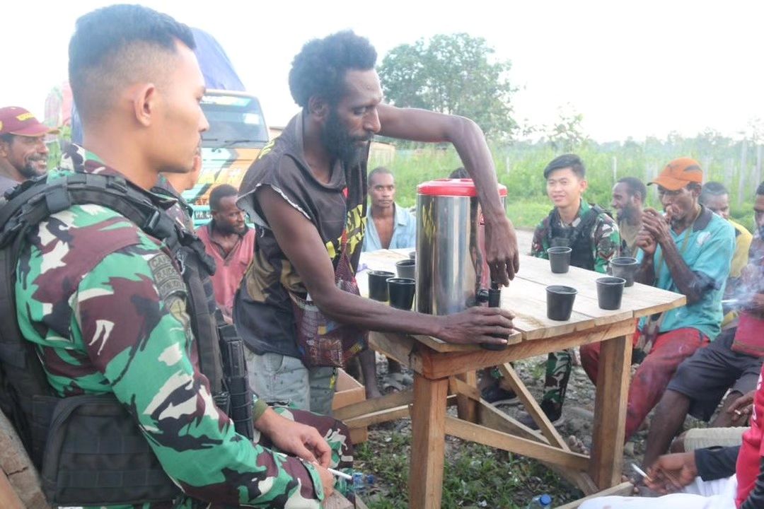 Seperti halnya yang dilakukan oleh personil Pos Kout Batas Batu telah membuktikan bahwa prajurit TNI dapat bergerak di tengah-tengah rakyat Papua dengan sangat dekat, tanpa adanya skat pemisah diantara mereka, hal ini terlihat pada saat acara ngopi bareng di Batas Batu, Kabupaten Nduga, Minggu(7/1/2024)