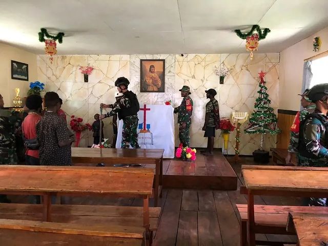 MetropolitanPost.id – Satgas Yonif Raider 303 Kostrad melalui Pos Beoga melaksanakan karya bakti di Gereja Beoga di Distrik Beoga, Kabupaten Puncak, Papua. Selasa (13/06/2023).