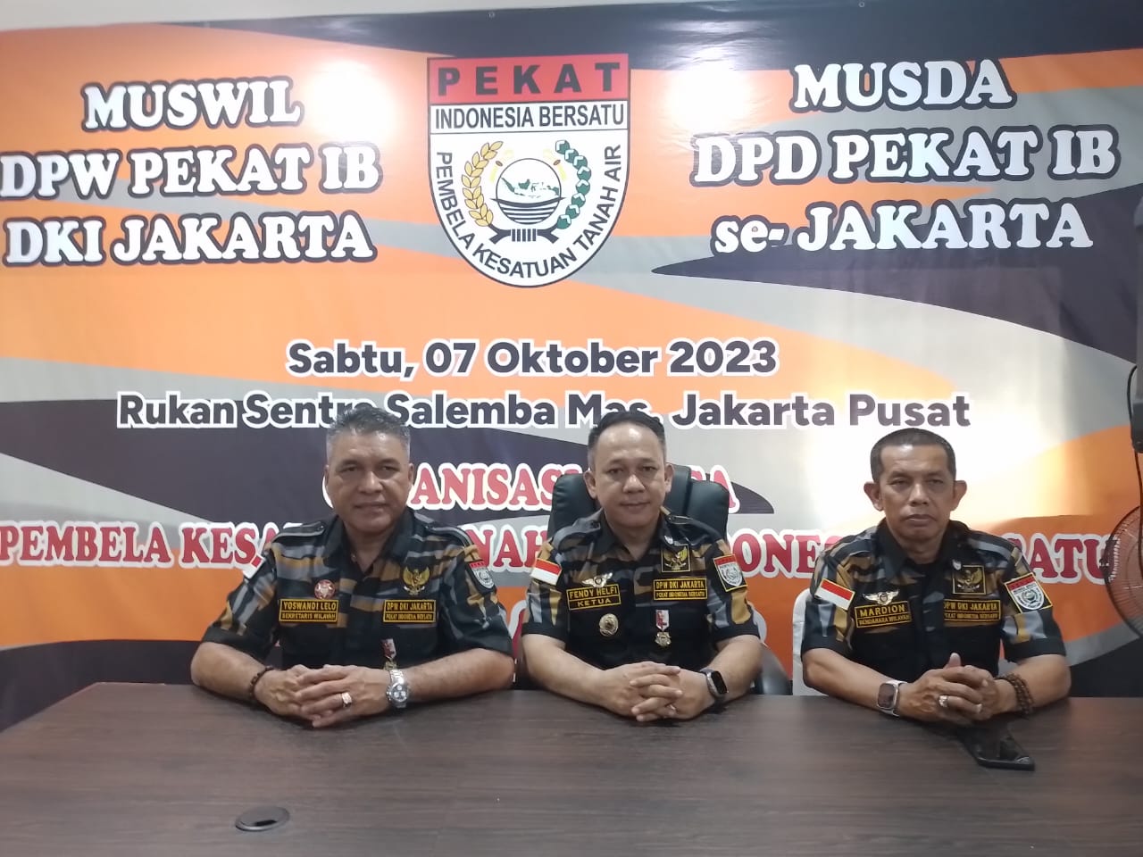 Seusai memimpin Muswil dan Musda DPW/DPD DKI Jakarta, Fendy Helfi sebagai Ketua DPW PEKAT IB DKI Jakarta menyampaikan press conference kepada awak media online ; “Terkait dengan agenda MUSWIL DPW PEKAT IB DKI Jakarta, sebelumnya kita kepengurusan DPW DKI Jakarta masih dalam belum definitif atau konsolidasi dan kali ini kita laksanakan Musyawarah Wilayah DPW DKI Jakarta sekaligus Musyawarah Daerah DPD seluruh DKI Jakarta yaitu Jakarta Timur, Jakarta Pusat, Jakarta Selatan, Jakarta Barat, Jakarta Utara sedangkan untuk Kepulauan Seribu akan segera diadakan Musda.