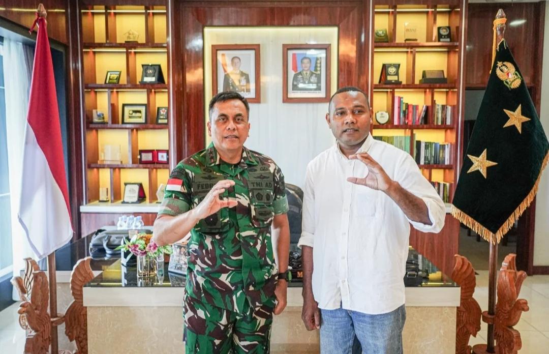 Jayapura – Panglima Kodam (Pangdam) XVII/Cenderawasih, Mayjen TNI Febriel Buyung Sikumbang, menegaskan komitmennya dalam mendorong pembangunan Papua agar semakin maju dan setara dengan daerah lain di Indonesia. Hal tersebut tercermin dalam pertemuan bersama tokoh muda Papua, Yoel Swabra, yang berlangsung di ruang kerja Pangdam pada Kamis (23/4/2026).