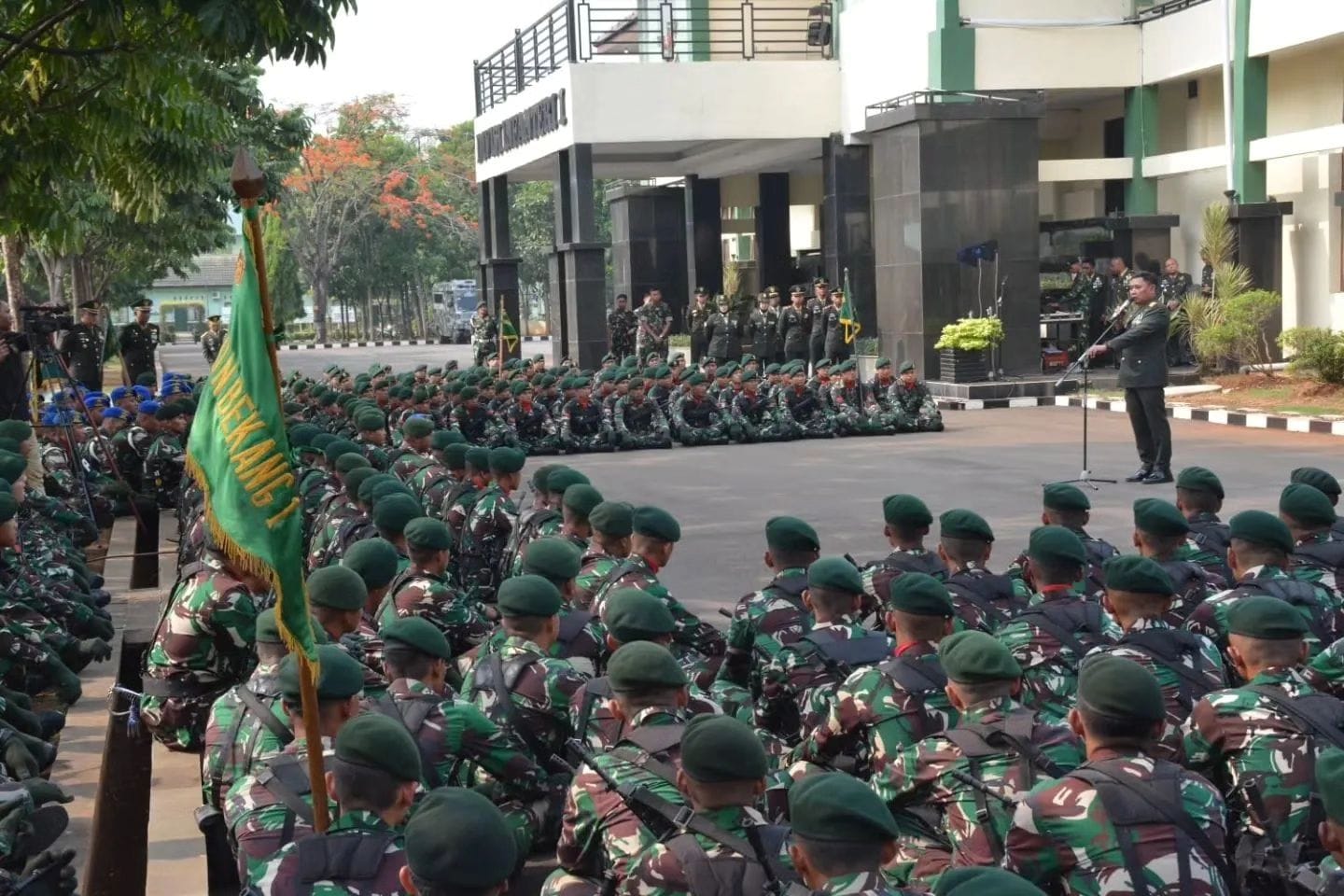 Panglima Divisi Infanteri (Pangdivif) 1 Kostrad Mayjen TNI Bobby Rinal Makmun S.I.P., memimpin jalannya Upacara Peringatan Hari Pahlawan Tahun 2023 yang mengusung tema “Semangat Pahlawan untuk Masa Depan Bangsa dalam Memerangi Kemiskinan dan Kebodohan” bertempat di Lapangan upacara Markas Divif 1 Kostrad, Kec. Cilodong Kota Depok, Jawa Barat. Jumat (10/11/2023). (Penkostrad).