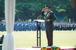 Selaku pimpinan upacara, Mayjen TNI Syafrial membacakan amanat dari Panglima TNI Jenderal TNI Andika Perkasa, S.E., M.A., M.Sc., M.Phil., Ph.D.