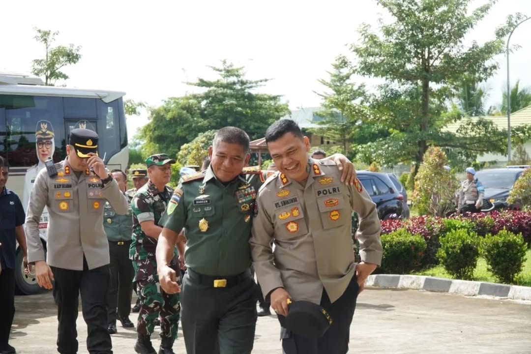 Panglima Divisi Infanteri 3 Kostrad, Mayjen TNI Bangun Nawoko menerima kunjungan silaturahmi sekaligus pamitan dari Kapolres Gowa, AKBP R.T.S Simanjuntak, S.H., S.I.K., M.M., M.I.K, di Markas Divif 3 Kostrad, Pakatto, Gowa. Kamis (10/04/2025).