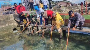 Seluruh Prajurit Pangkalan TNI AL (Lanal) Simeulue bersama unsur Forkopimda, Pemda dan masyarakat Simeulue serta Pramuka Saka Bahari melaksanakan kegiatan bersih-bersih pantai yang dilaksanakan di Pesisir Pantai Desa Suka Maju, Kecamatan Simeulue Timur, Kabupaten Simeulue, Rabu (07/09/2022).