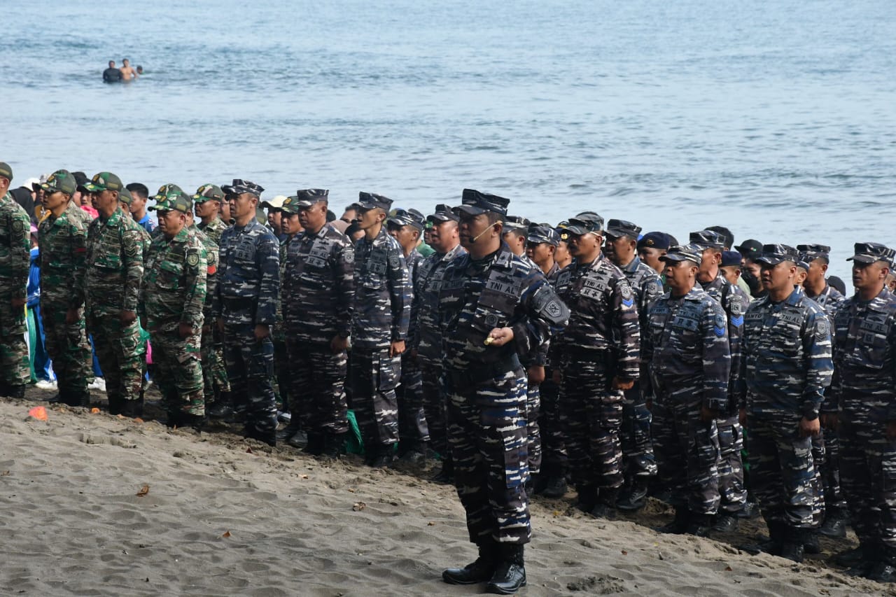 TNI AL, Bandung,- Menteri Lingkungan Hidup dan Panglima TNI bersama-sama membersihkan Pantai Batukaras dalam rangka Hari Peduli Sampah Nasional 2025 untuk mengatasi masalah sampah laut dan mikroplastik yang juga dilaksanakan di 7 (tujuh) lokasi aksi bersih secara vicon diantaranya Pantai Laguna Ancol Jakarta, Pantai Basilam Dumai Riau, Pantai Solo Loang PPU Kalimantan Timur, Pantai Air Manis Sumatera Barat, Pantai Likupang Minahasa Utara, Pantai Pelabuhan Lepe Bulukamba, dan Pantai Cangu Bali, Minggu (23/02/2025).