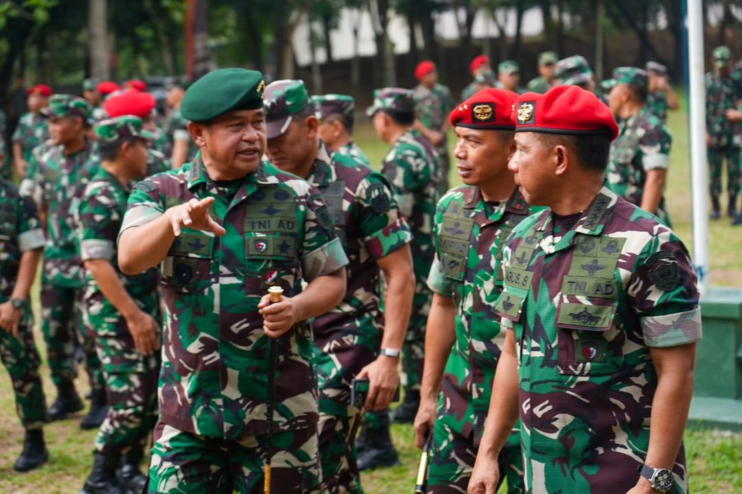 MetropolitanOost – Panglima Kostrad (Pangkostrad) Letjen TNI Maruli Simanjuntak, M. Sc., mendapingi Kepala Staf Angkatan Darat (Kasad) Jenderal TNI Agus Subiyanto, S.E., M.Si., saat meninjau Training Center (TC) sekaligus melepas Kontingen Petembak TNI AD yang akan bertanding pada AARM ke -31 di Thailand, bertempat di Markas Kopassus Cijantung, Jakarta, Selasa (14/11/2023).