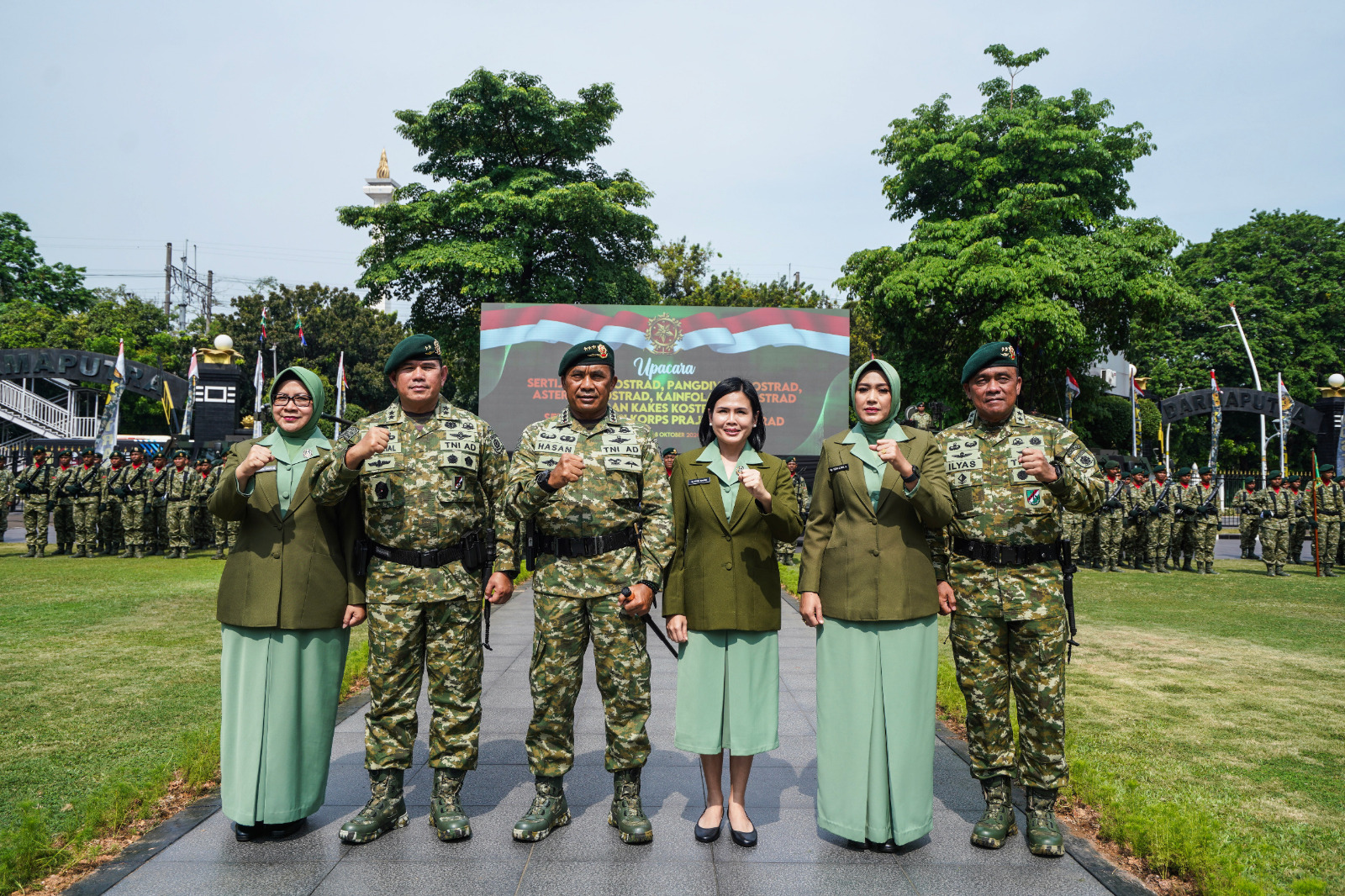 Bertempat di Markas Kostrad, Jakarta, Selasa (8/10/24) Prajurit dan PNS Makostrad melaksanakan acara penyambutan calon Kepala Staf Kostrad Mayjen TNI Syafrial, PSC., M.Tr.(Han), dan pelepasan mantan Kepala Staf Kostrad Mayjen TNI Ilyas Alamsyah. Kegiatan yang telah menjadi tradisi dan agenda khusus di lingkungan Kostrad ini dipimpin oleh Panglima Kostrad (Pangkostrad) Letjen TNI Mohamad Hasan.