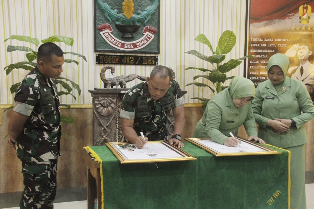 Kunjungan ini disambut dengan penuh semangat oleh prajurit dan keluarga besar Yonif 412/BES/6/2 Kostrad. Komandan Batalyon, Letkol Inf Syahrul Ramadhan, S.I.P., memberikan laporan mengenai kondisi satuan, yang kemudian diikuti dengan pengalungan syal batik dan pemberian handbouquet oleh anak-anak prajurit Bharata.