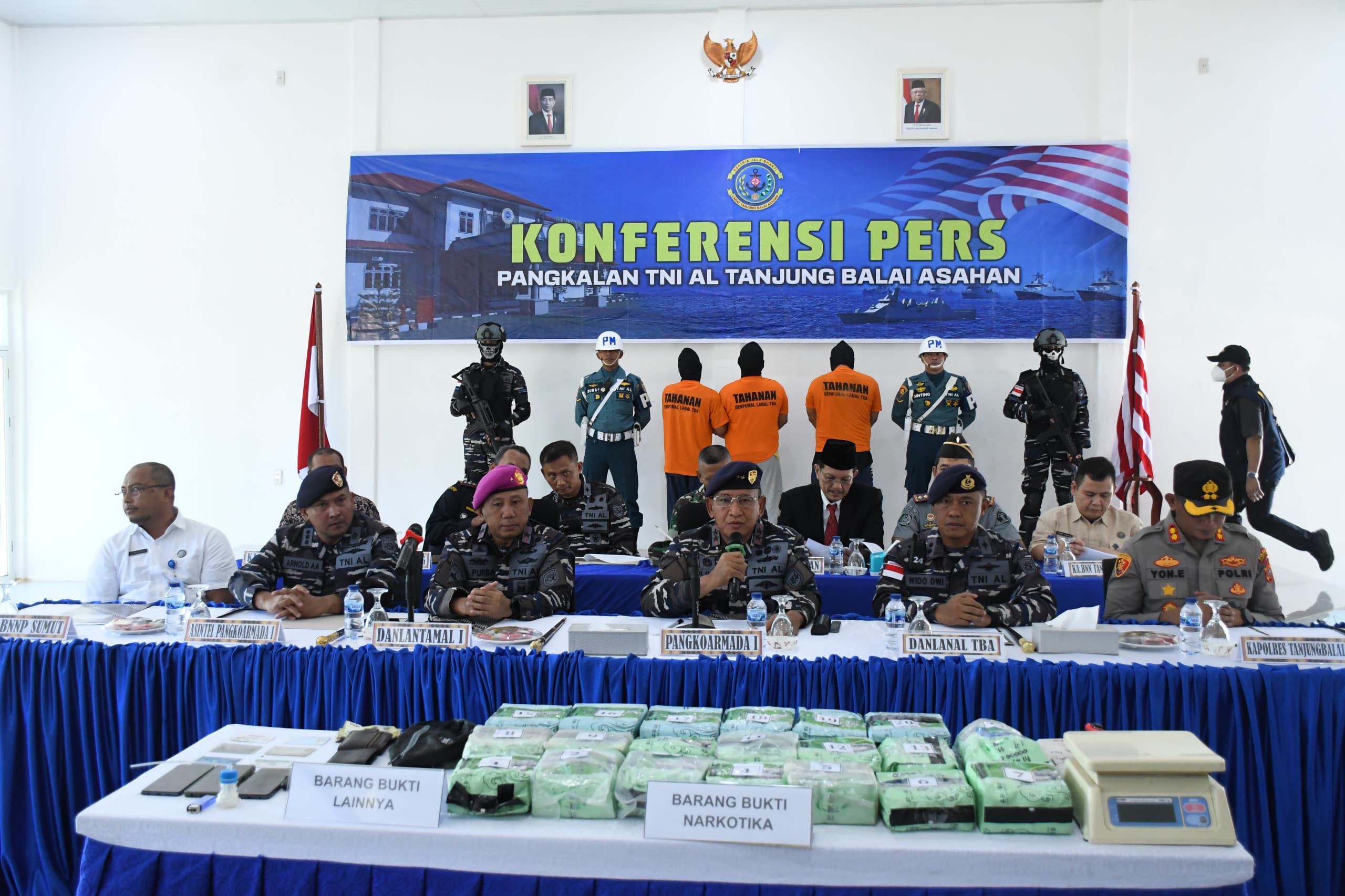 Dihadapan awak media, Pangkoarmada I menyampaikan bahwa keberhasilan F1QR menangkap kurir narkotika jenis sabu sebanyak 20 bungkus teh cina dengan berat 21.244 gram ini dari informasi masyarakat sekitar Tanjungbalai, bahwa ada narkoba masuk melalui laut ke Perairan Tanjungbalai. Dengan tertangkapnya 20 bungkus teh cina narkoba jenis sabu ini diperkirakan kita dapat menyelamatkan ± 200.000 anak bangsa untuk tidak menggunakan barang haram tersebut, dengan nilai uang yang dapat diselamatkan kurang lebih 25 Milyar Rupiah.