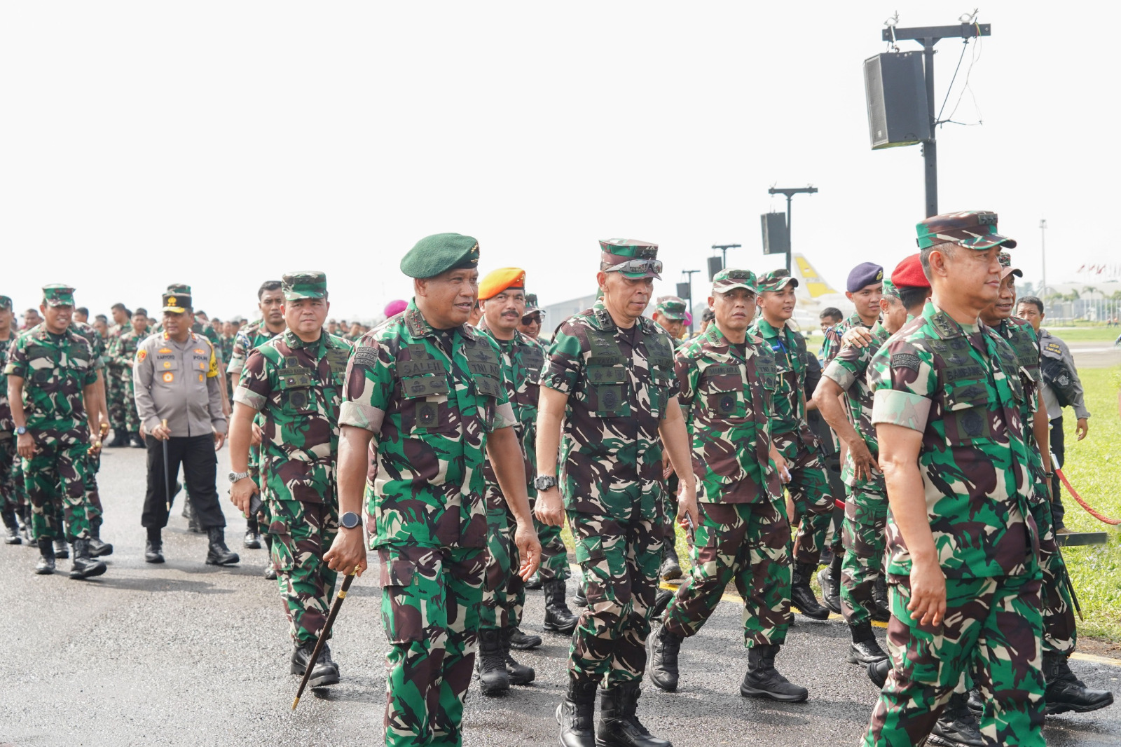 MetropolitanPost.id – Panglima Kostrad (Pangkostrad) Letnan Jenderal TNI Muhammad Saleh Mustafa menghadiri Apel Gelar Pasukan Pengamanan Pemilu Tahun 2024 di lapangan Taxy Way Echo Halim Perdanakusuma, Jakarta Timur, Kamis (1/2/2024).