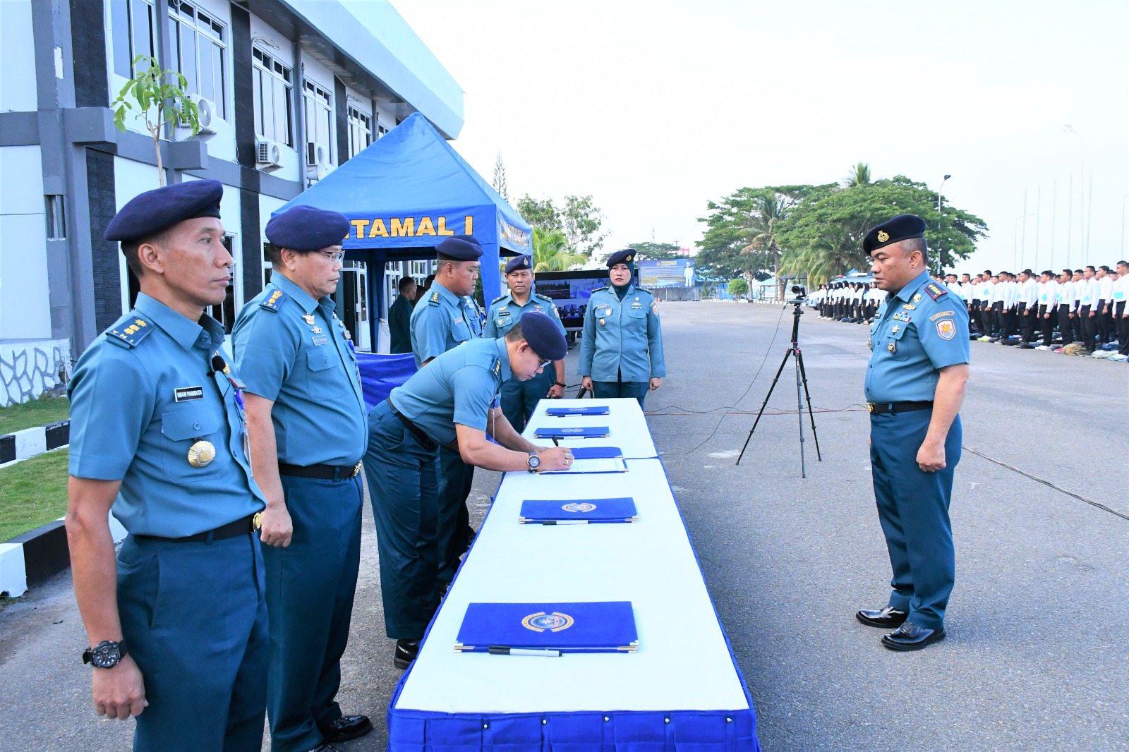 Komandan Pangkalan Utama TNI Angkatan Laut I (Danlantamal I) Brigjen TNI (Mar) Jasiman Purba, S.E., CHRMP., selaku Ketua Panitia Daerah (Panda) Lantamal I diwakili Wadan Lantamal I Kolonel Laut (P) Siswo Widodo, S.T., memimpin Upacara Penandatanganan Pakta Integritas Panitia Penerimaan Calon Bintara Pria/Wanita dan Calon Tamtama PK TNI Angkatan Laut Gelombang II TA. 2024, bertempat di Lapangan Apel Mako Lantamal I, Jalan Serma Hanafiah No. 01 Belawan, Sumatera Utara, Kamis (08/8/2024).