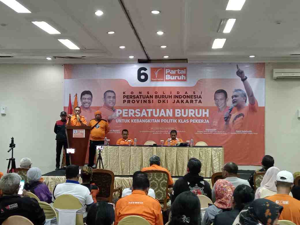 Partai Buruh Provinsi DK! Jakarta menggelar rapat akbar persatuan buruh pada hari Sabtu tanggal 11 Februari 2023 di Puri Jaya Hotel Jakarta.