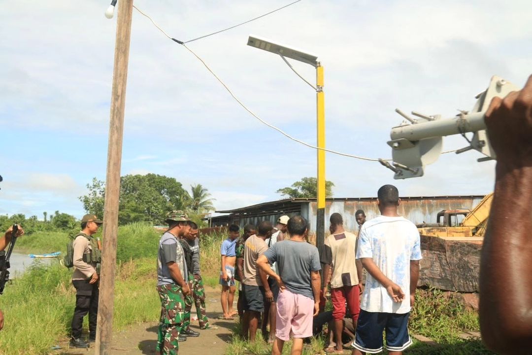 Penerangan di Kampung Mumugu, Batas Batu masih sangat minim, sehingga program lampu penerangan Solar Cell bantuan dari Bapak Pangkostrad Letjen TNI Muhammad Saleh Mustafa secara bertahap di fokuskan oleh Satgas Mobile Yonif 411/Pandawa Kostrad di daerah pedalaman Papua Batas Batu.