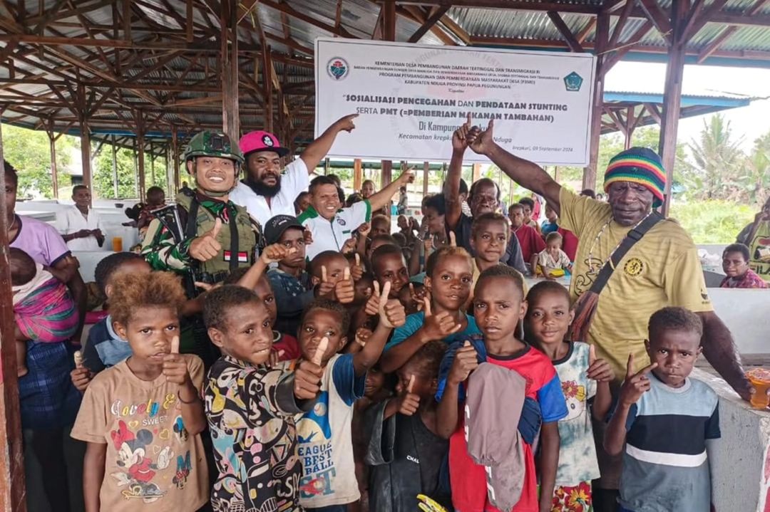 Satgas Pamtas Mobile RI-PNG Yonif 503 Kostrad Koops Habema menghadiri sosialisasi dan pencegahan Stunting di Desa Krepkuri Distrik Krepkuri Kabupaten Nduga Papua. Jumat (27/09/2024).
