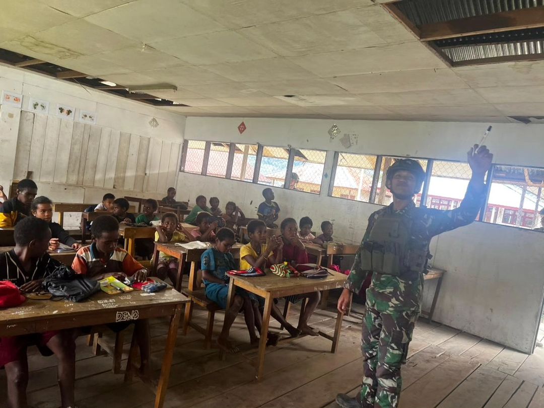 Pasiter Satgas Letda Chk Dani menyampaikan bahwa minimnya tenaga pendidik di wilayah Pedalaman Papua, menjadi salah satu perhatiannya dalam meningkatkan mutu pendidikan masyarakat, kami mendukung pemerintah di bidang pendidikan, yaitu dengan membangun Indonesia di pedalaman Papua dengan memperkuat daerah-daerah dan desa dalam peningkatan kualitas pendidikan,hari ini kami mengajar bertemakan Pancasila untuk memperingati hari lahir pancasila” Ujar Pasiter