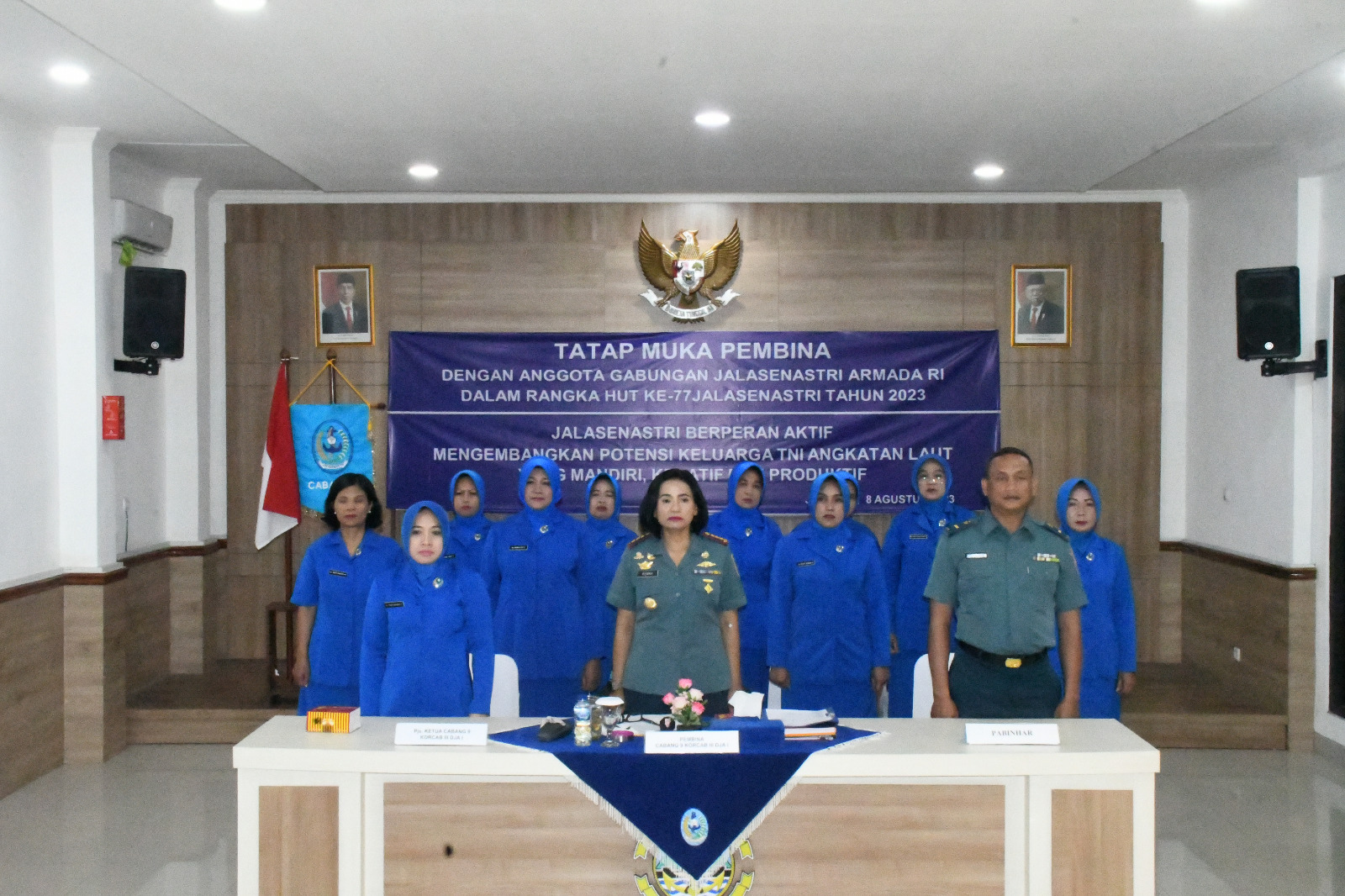 MetropolitanPost.id – Komandan Lanal Bandung selaku Pembina Jalasenastri Cabang 9 Korcab III DJA I Kolonel Laut (KH/W) Dr. Renny Setiowati, S.T., M.Sc., M.Tr.Hanla., didampingi PjS. Ketua dan Pabinhar serta Pengurus Jalasenastri Cabang 9 Korcab III DJA I mengikuti Tatap Muka Pembina dengan anggota Gabungan Jalasenastri Armada RI secara Virtual, bertempat di Aula Mako Lanal Bandung, Jalan Aria Jipang No. 8 Kota Bandung, Selasa (08/08/2023).