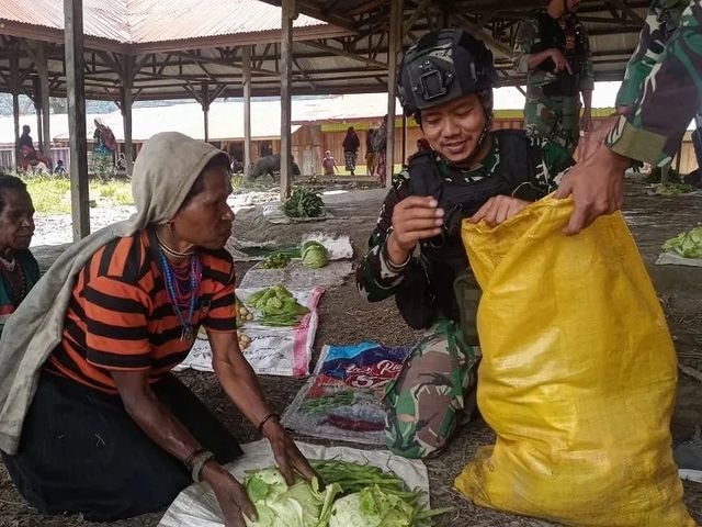 Menyikapi hal tersebut, Prajurit TNI dari Satgas Yonif Raider 303/SSM yang dipimpin secara langsung oleh Letda Ckm Edi Triawan dari Pos Sinak membeli berbagai macam hasil bumi seperti sayur-sayuran serta buah-buahan milik mama-mama