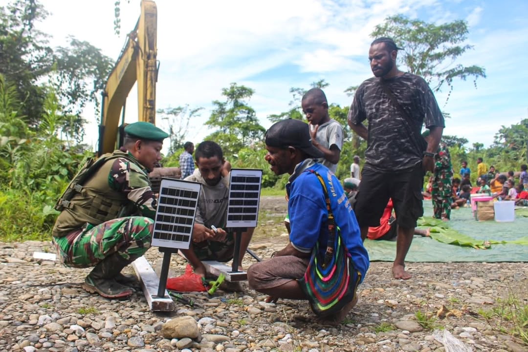 Satgas Yonif 503/Mayangkara Pos Quary Atas juga memberikan 25 paket lampu solar sel, sebagai bentuk kepedulian Kesatria Mayangkara kepada warga masyarakat untuk menerangi akses jalan di kampung Ginit. “Terima kasih Satgas 503 yang telah peduli memberikan kami sembako dan lampu solar sel untuk menerangi kampung Ginit, sekali lagi terima kasih”, Ucap warga kampung Ginit.