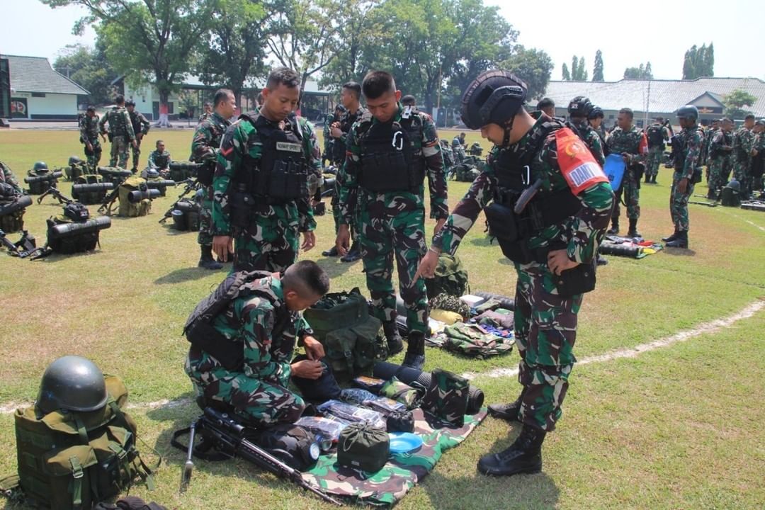 MetropolitanPost.id – Prajurit Kesatria Mayangkara persiapkan pelaksanaan Latihan Taktis Tingkat Team dengan pengecekan perlengkapan perorangan tiap tim di lapangan 1 Yonif 503 Kostrad. Mojokerto, Senin (09/10/2023).