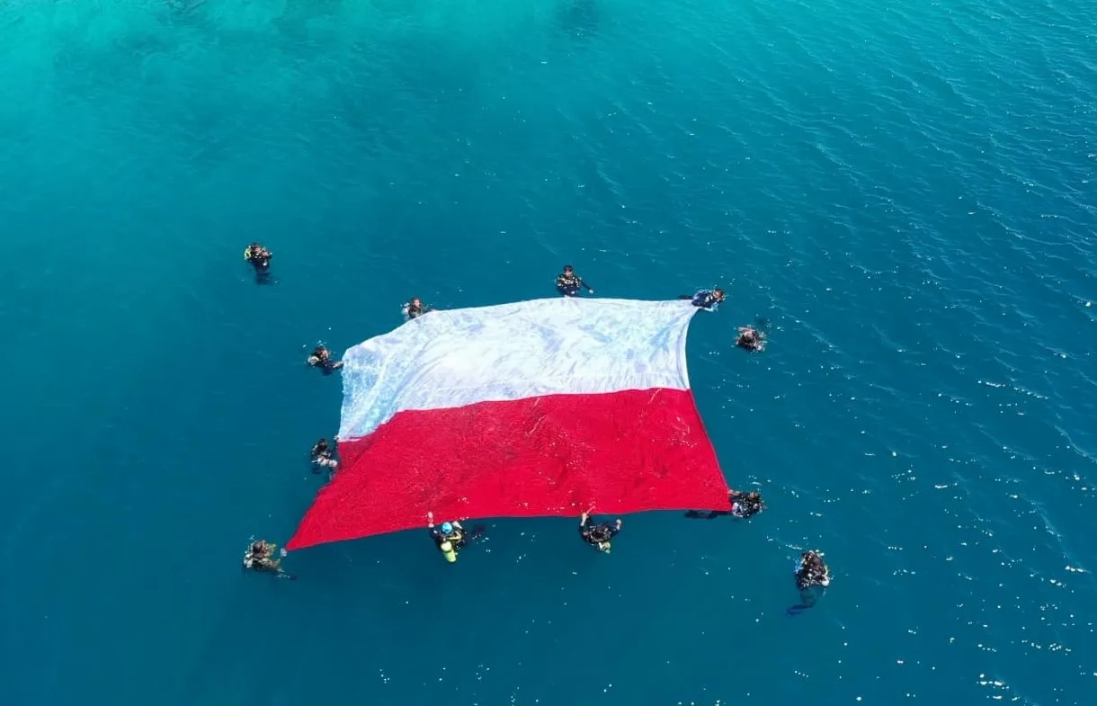 Pengibaran Bendera Merah Putih di bawah laut dalam rangka Sambut HUT RI ke 79 ini, membentangkan bendera raksasa sebesar 11 x 9 meter dikedalaman 15 Meter, dengan 15 peserta selam yang berasal dari berbagai instansi dan komunitas selam termasuk 2 orang penyelam dari Brigif 3 Kostrad.