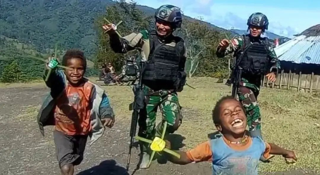 Penuh Keakraban dan Keceriaan, Anak Papua Bersama Prajurit Kostrad
