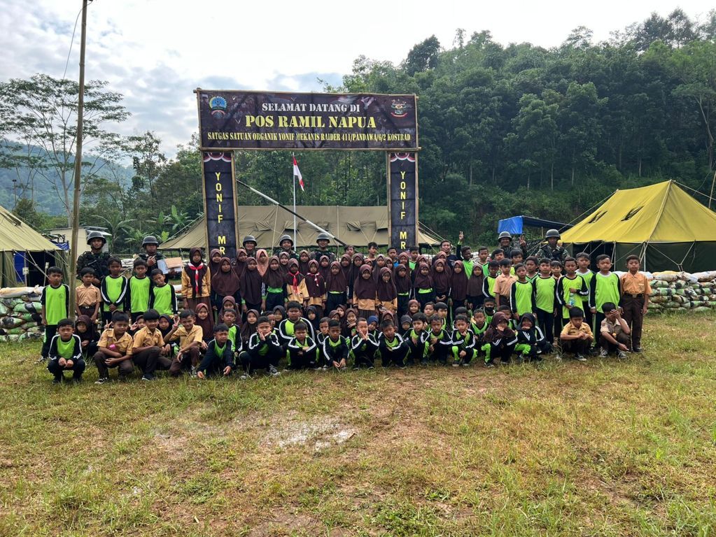 Lanjutnya, untuk mengenal dan melihat kegiatan prajurit yang sedang latihan, puluhan siswa yang didampingi oleh guru sekolahnya mendatangi langsung Pos Napua, dan bermain bersama dengan personel Pos Napua.