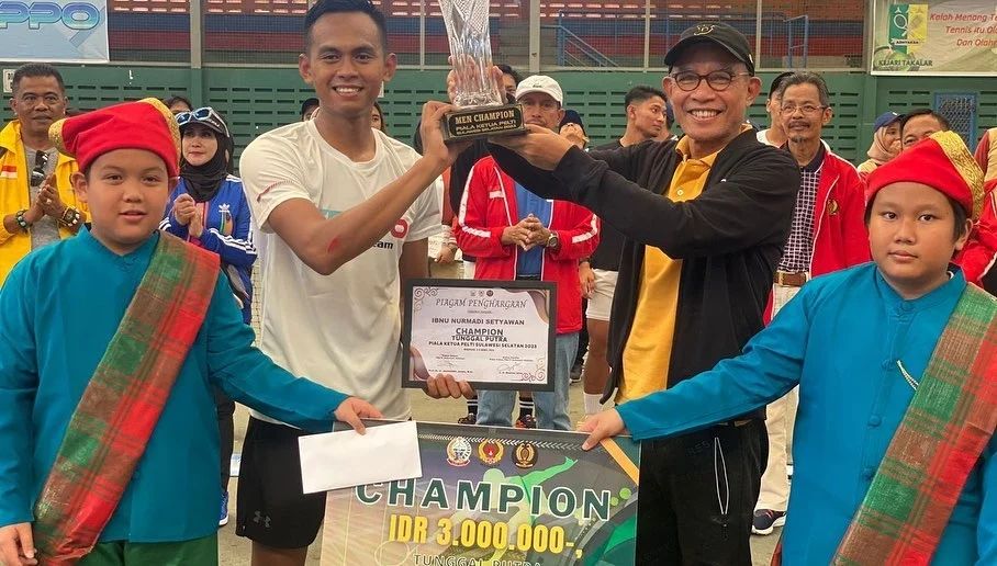 Letda Cpm Ibnu Nurmadi S.Tr.(Han) mengalahkan Ahmad Naufal (Peraih Medali Emas Porda Sulsel) di Final dengan skor 7-6 (7) 1-6 1 (10-5).