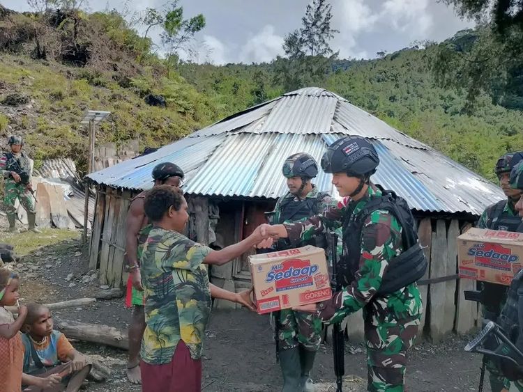 MetropolitanPost.id – Sebagai bentuk kepedulian dan perhatian kepada warga dalam mendekati perayaan Hari raya Natal tahun 2022, Satgas Yonif Raider 303/SSM Kostrad mengunjungi Honai – honai memberikan bantuan berupa bahan makanan kepada warga masyarakat Kampung Wombru, Distrik Megeabume, Kabupaten Puncak, Papua, Sabtu (24/12/2022)