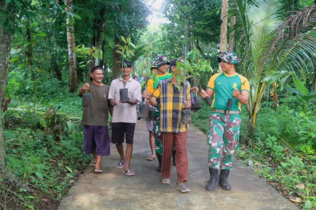 Kegiatan ini melibatkan prajurit Yonif 412/BES bersama masyarakat setempat dalam aksi penanaman 2.500 bibit pohon dan pembersihan jalan kampung. Adapun bibit pohon yang ditanam terdiri dari 2.000 pohon sukun, 250 pohon durian dan 250 pohon alpukat.