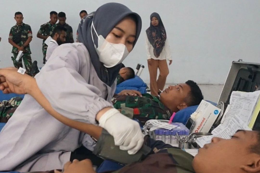 Kegiatan yang diselenggarakan bekerja sama dengan PMI Kota Makassar ini mengambil tema “Arhanud TNI AD Patriot NKRI yang Profesional, Modern, dan Dicintai Rakyat” dengan melibatkan 100 personel militer dan persit dari kedua satuan tersebut.