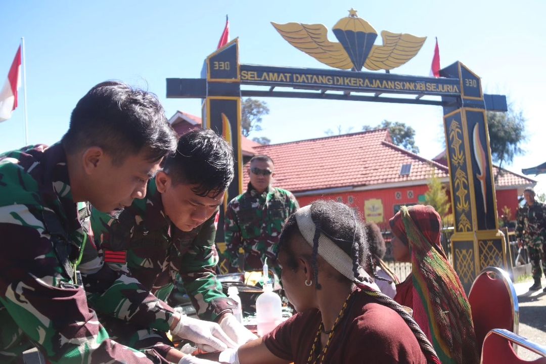 Para Ksatria Tri Dharma menggelar pemeriksaan kesehatan dan pengobatan gratis untuk Warga Intan Jaya di semua Pos Satgas Yonif 330 Kostrad yang ada di Distrik Sugapa, Kab. Intan Jaya, Prov. Papua Tengah, Kamis (26/10/2023).