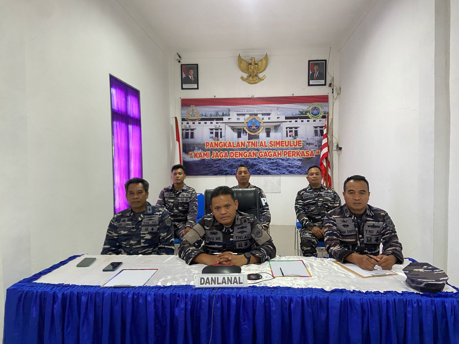 TNI AL, Simeulue,- Komandan Pangkalan TNI Angkatan Laut Simeulue Letkol Laut (P) Oyu Mulia Sukmana, S.T., M.T., M.Tr.Opsla., beserta Perwira Staf Lanal Simeulue mengikuti kegiatan pembekalan kepemimpinan yang disampaikan oleh Laksamana Madya (Purn) Taufiqoerrochman secara video conference (vicon), Senin (10/3/2025).