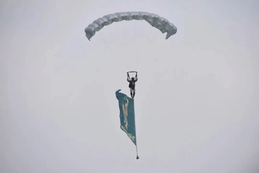 Peterjun Brigif 17 Kostrad Meriahkan HUT ke-79 TNI di Monas dengan Aksi Free Fall