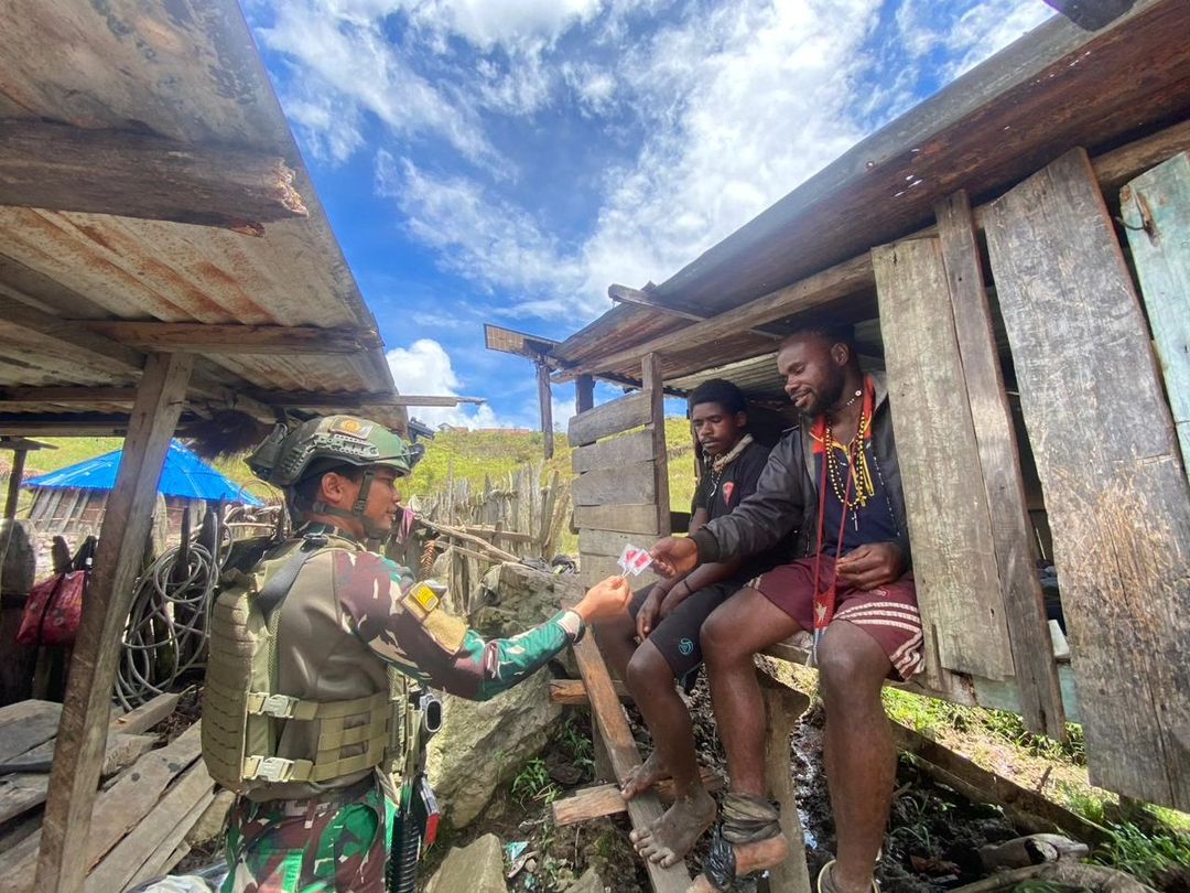 Pos Sinak Satgas Yonif 323 Kostrad Bantu Masyarakat Papua dengan Pembagian Pakaian dan Pelayanan Kesehatan