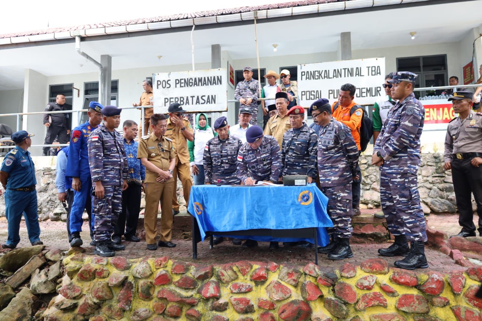 MetropolitanPost.id – Komandan Lanal Dumai diwakili Palaksa Letkol Laut (PM) Priatno, S.H., M.H., dan Komandan Lanal Tanjung Balai Asahan Letkol Laut (P) Wido Dwi Nugraha, S.E., M.Tr.Opsla., melaksanakan penandatanganan alih bina Pos TNI AL Pulau Jemur dari Lanal Tanjung Balai Asahan ke Lanal Dumai yang disaksikan langsung oleh Bupati Rokan Hilir Afrizal Sintong, Selasa (19/12/2023).